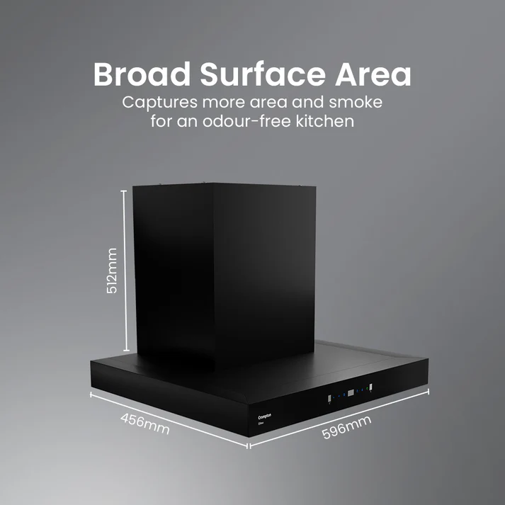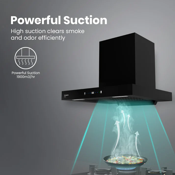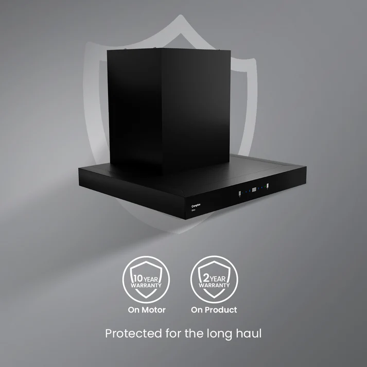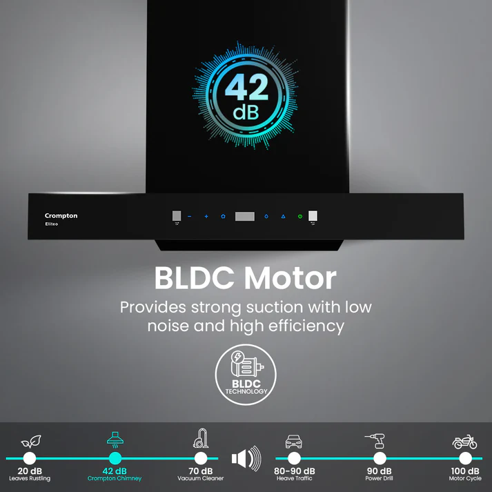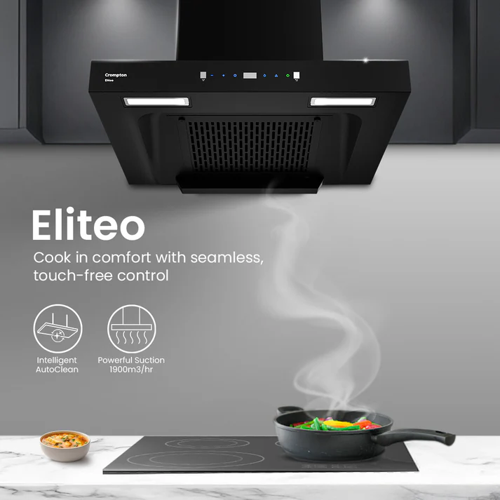 Upgrade your kitchen with the Crompton Eliteo Chimney, built for effortless performance and modern convenience. Its Intelligent AutoClean function saves you the hassle of frequent cleaning, while Smart On and Gesture Control make operation completely hands-free and intuitive. It is powered by an advanced BLDC motor, which delivers high performance with greater energy efficiency and durability. Its broad surface area ensures maximum smoke capture in one go, giving you a cleaner, healthier cooking environment every time.